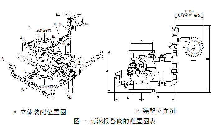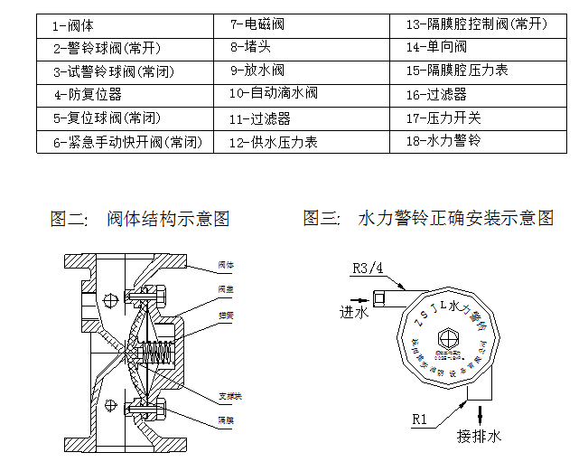 c、雨淋閥的供水(shuǐ)側和係(xì)統側必須安裝控製閥門(mén),以(yǐ)便進行調試和(hé)維修,安裝前管道必須按施工規範經過衝洗方可安裝。
