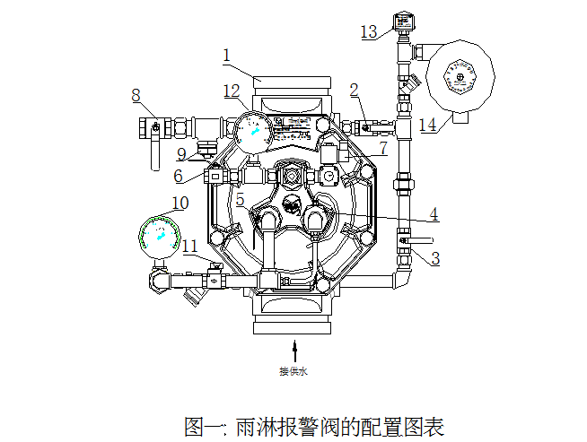 2、雨淋閥裝置,隨機配Y60-2.5MPa壓力表2隻,壓力開關、水力警鈴、使用說明書、合格證各(gè)壹份。控製閥門、氣壓維(wéi)持裝置、電(diàn)控箱等配件需單獨訂貨。